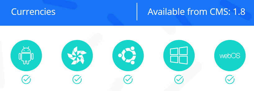 Templates can be configured to make changes to the design appearance using a range of options in the Properties Panel. Enter Currencies using their acronyms/abbreviations you wish to show as well as a Base currency from the Configure tab for each Template added to the Layout/Playlist.