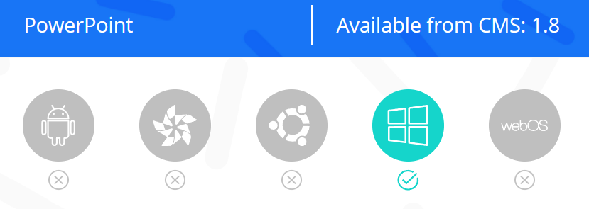 PowerPoint is a proprietary format from Microsoft and can only be displayed on a Windows-based signage player which has a full copy of Microsoft PowerPoint installed on each Windows Player. (Please see the Prepare your Windows Players section)